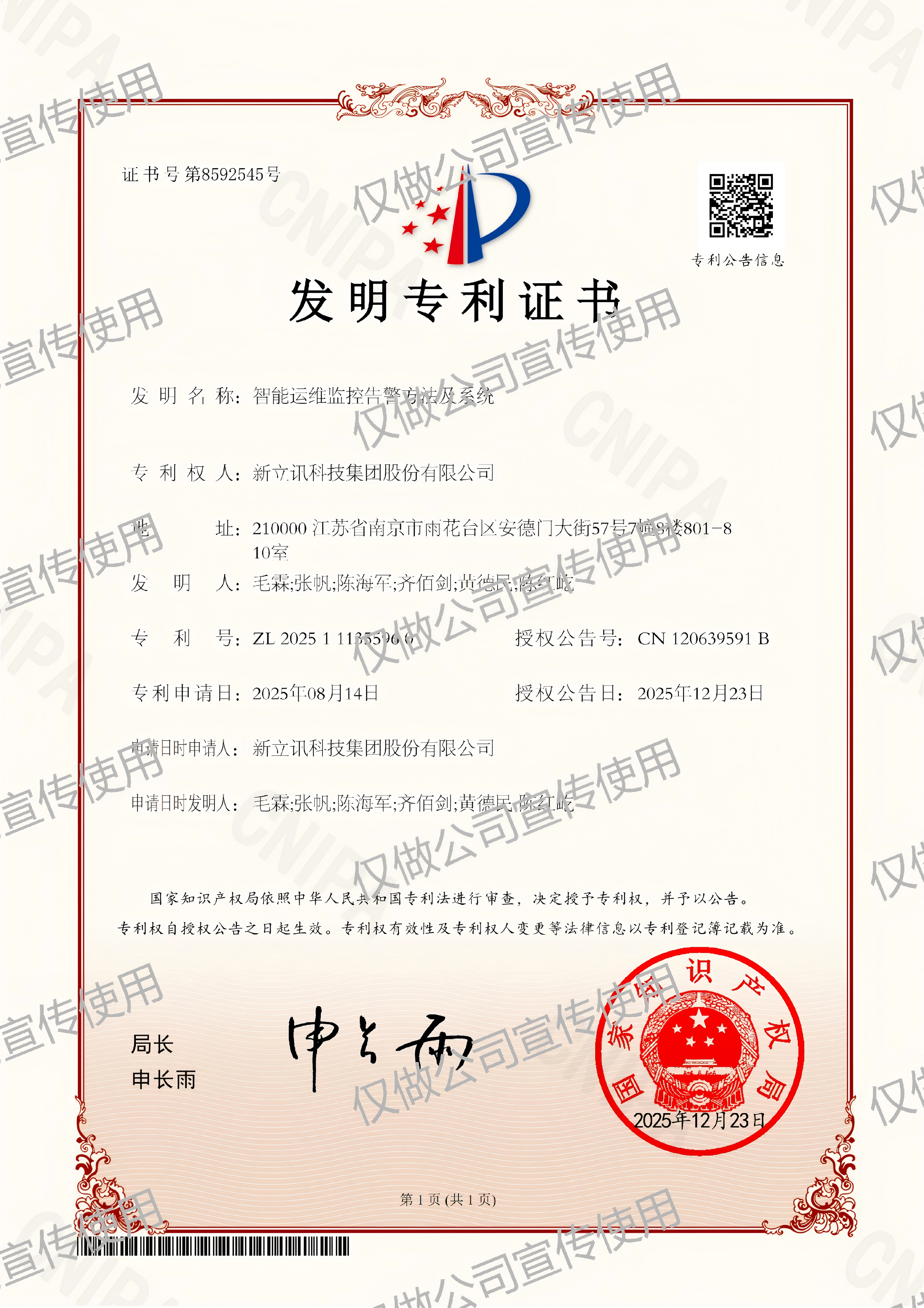 • 2020-12-28新立訊5G物聯網與數據監測云平臺軟件V1.0軟件產品證書查看