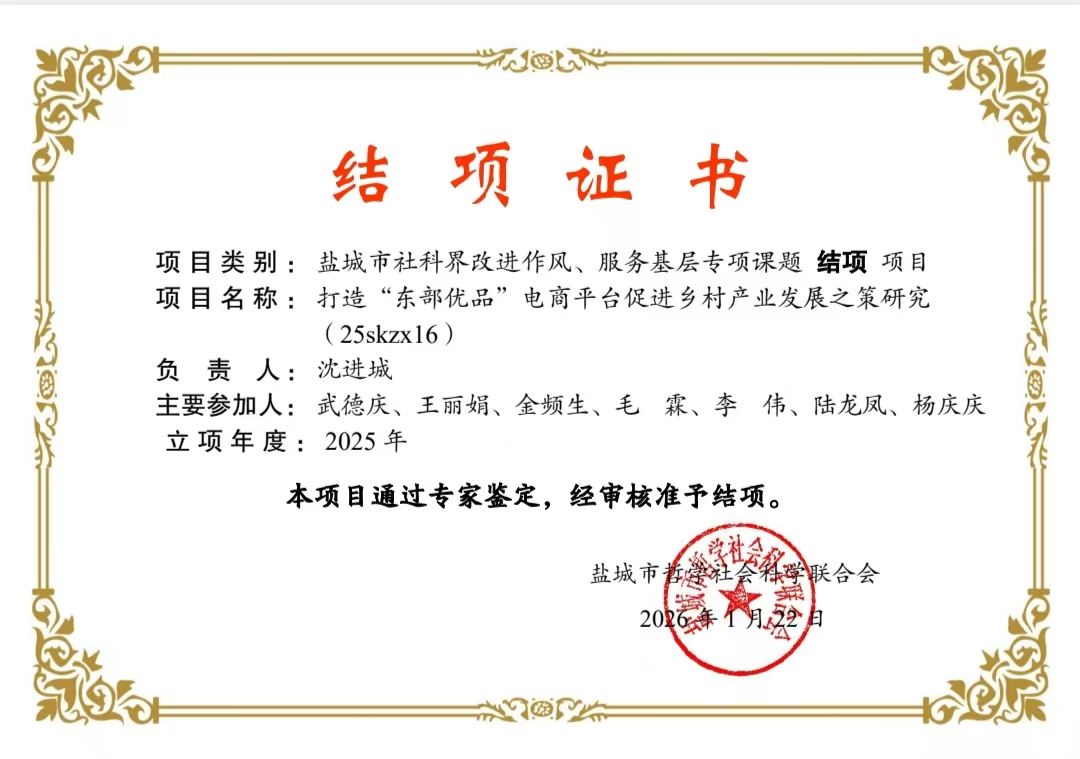 • 2026-03-13【結項證書】鹽城市社科界改進作風、服務基層專項課題結項項目查看