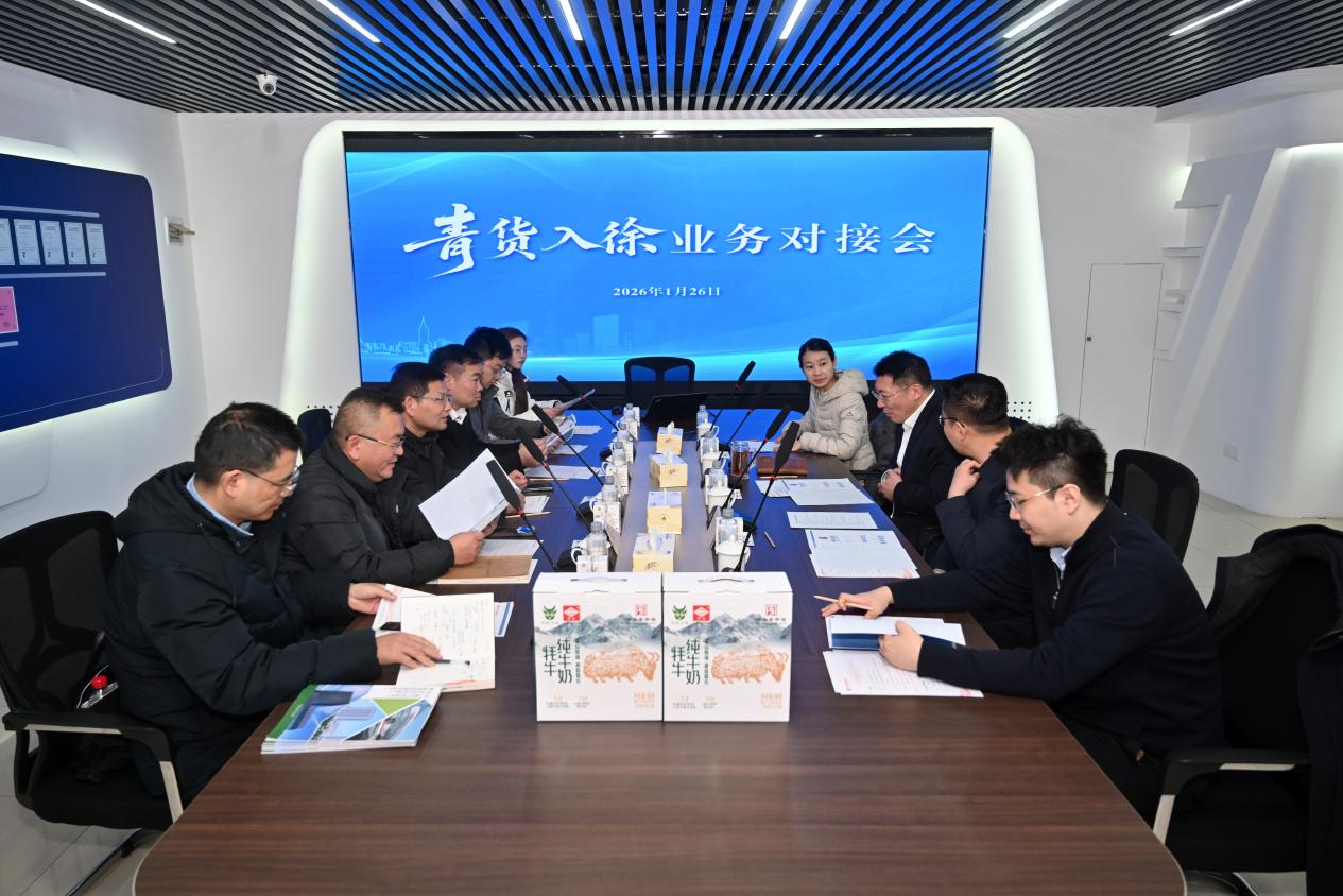 2026年1月26日,為持續深化落實蘇青兩省省長調研青海農林牧商品交易中心時指示精神,在江蘇援青工作隊及徐州工作組協調下,徐州市港務區管委會副主任、海南州興海縣副書記、副縣長杜昆鵬,新立訊科技集團董事長(兼青海交易中心董事長)毛霖,海南州興海縣發改工信局副局長李東陽,董事長助理(兼青海交易中心副總經理)楊慶慶,電商總監李積鑫等赴徐州報業傳媒集團調研會商,與徐州報業傳媒集團黨委書記、社長盧波,徐州報業傳媒集團黨委委員、副總編輯蔣昌一,徐州優品購電子商務有限公司副總經理趙培、房之翔開展“青貨入徐”專項業務對接會。