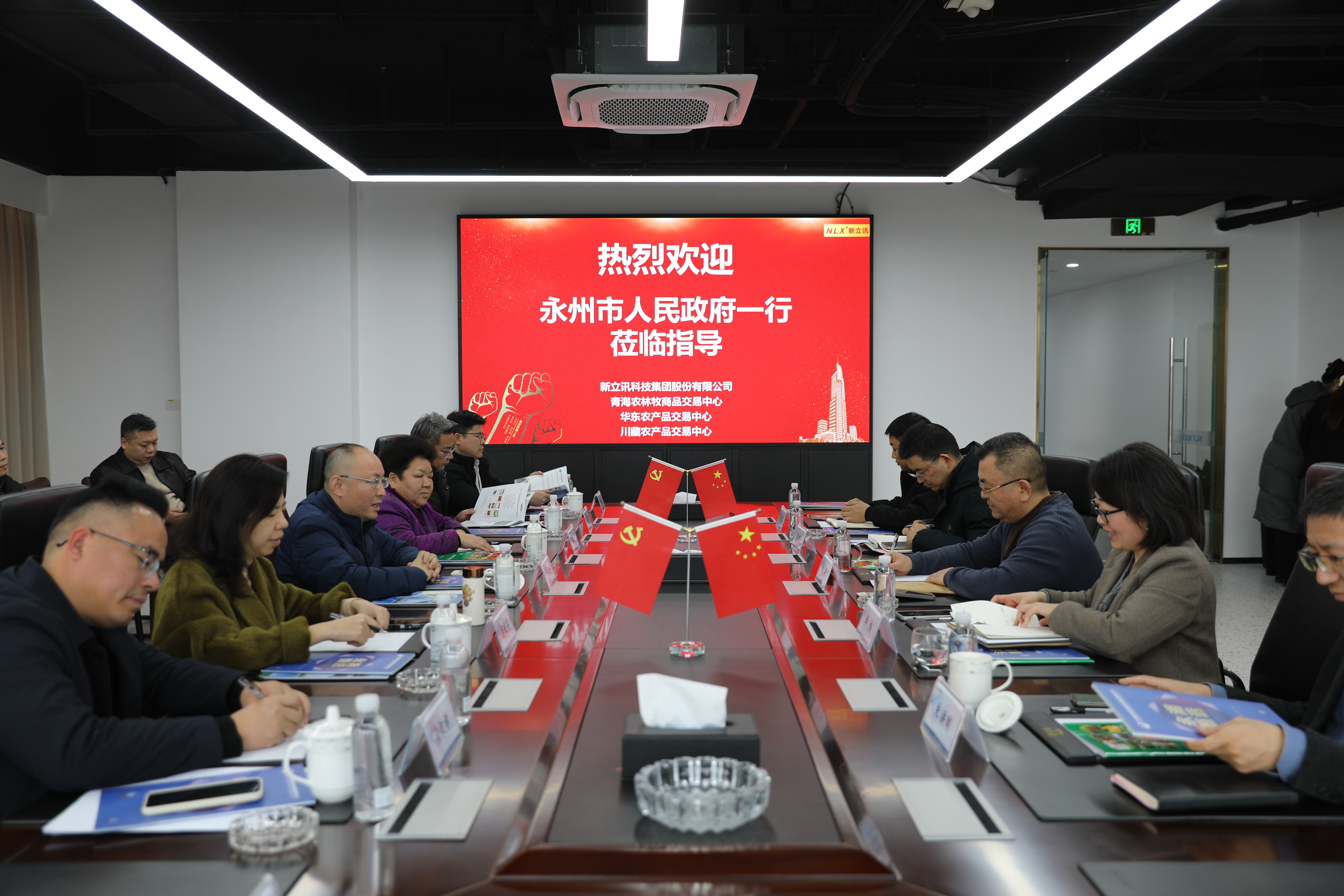 2026年1月27日,永州市人民政府副市長李欽,永州市農(nóng)業(yè)農(nóng)村局局長唐慧云,永州市商務(wù)局局長周曉芬,永州市港發(fā)集團(tuán)供應(yīng)鏈公司董事長陳震源,永州市農(nóng)業(yè)綜合服務(wù)中心主任楊祝學(xué)及永州商會(huì)副會(huì)長魏世喜等調(diào)研新立訊總部。新立訊科技集團(tuán)董事長(兼青海、華東、川藏農(nóng)產(chǎn)品交易中心董事長)毛霖,常務(wù)副總經(jīng)理李偉及集團(tuán)農(nóng)產(chǎn)業(yè)互聯(lián)網(wǎng)團(tuán)隊(duì)陪同調(diào)研。