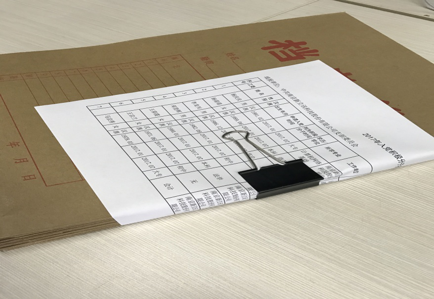 清查自2017年9月起至今,歷時近2個月。清查過程中,支部依據《中國共產黨發展黨員工作細則》,建立了黨員發展檔案清單。清單內容全面涉及了發展黨員過程中應形成的材料。支部黨務干事按“一檔一清單”、“以清單為依據”的原則,全面清查入黨積極分子和擬發展預備黨員的黨員發展檔案,總結黨員發展檔案管理中的經驗教訓,針對發現的問題和不足,及時記錄并反饋給當事人,要求其限期整改。