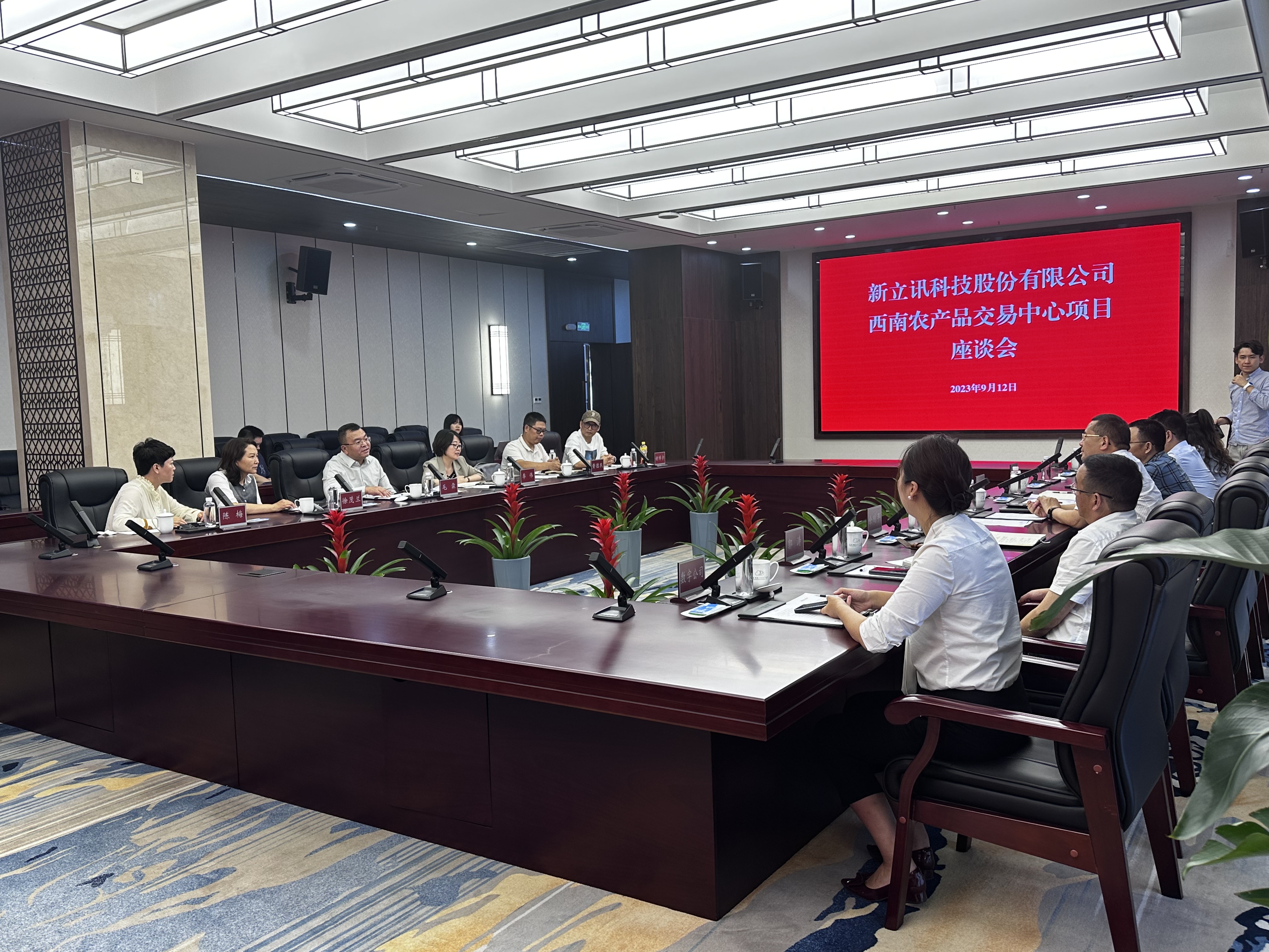 2023年9月12日,新立訊及青海農(nóng)林牧商品交易中心、華東農(nóng)產(chǎn)品交易中心董事長兼總經(jīng)理毛霖、新立訊副總經(jīng)理李偉一行赴四川雅安市大數(shù)據(jù)產(chǎn)業(yè)園進(jìn)行實(shí)地考察,雅安市政協(xié)副主席,雅安經(jīng)開區(qū)黨工委副書記、管委會(huì)主任李陽軍,雅州新區(qū)管委會(huì)黨工委委員、管委會(huì)副主任、二級(jí)巡視員余剛平,四川雅州新區(qū)發(fā)展集團(tuán)黨委副書記、總經(jīng)理周顯祥等領(lǐng)導(dǎo)會(huì)見毛霖一行并舉行座談。